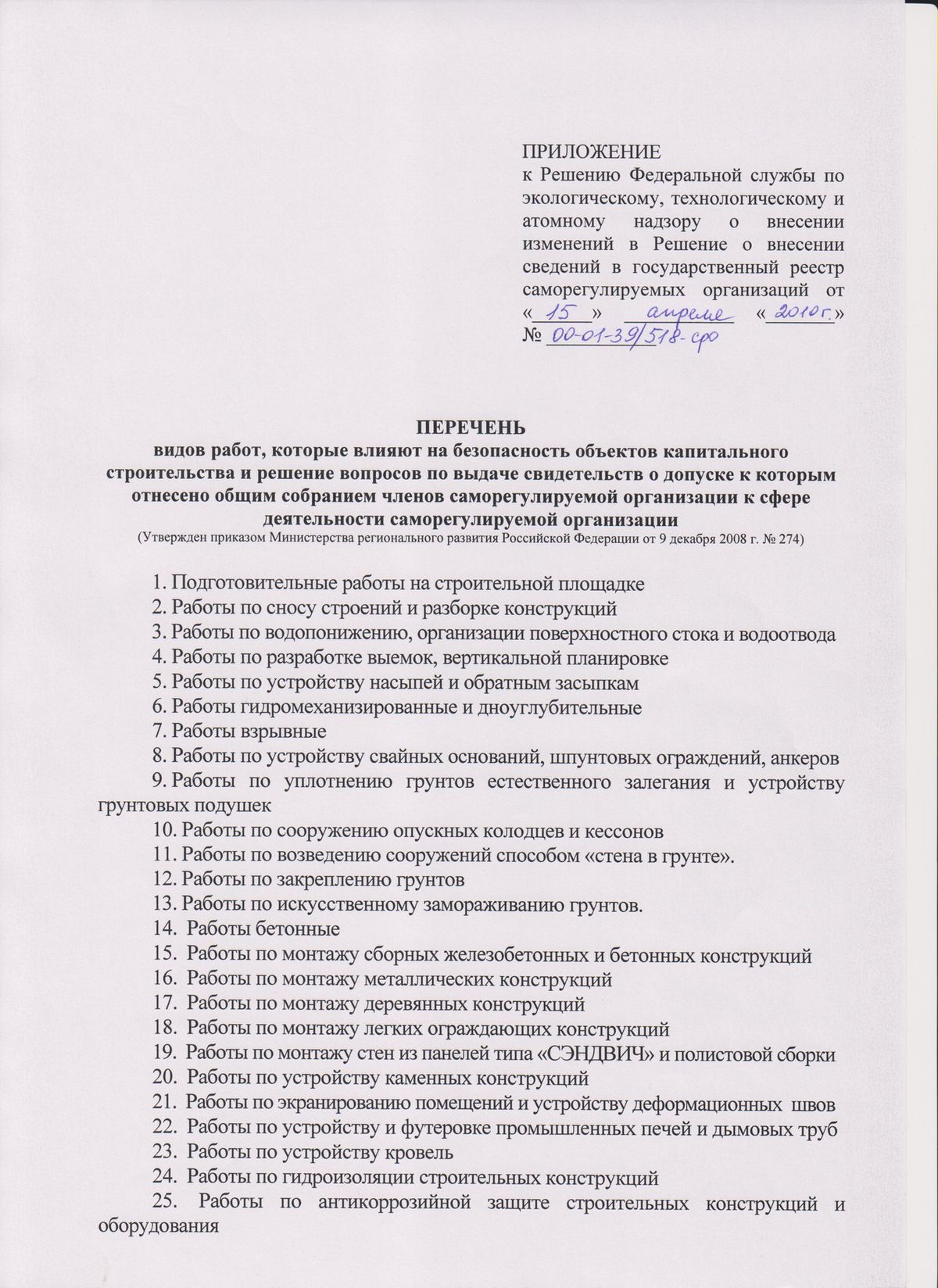 15 апреля 2010 г. Федеральной службой по экологическому, технологическому и атомному надзору принято решение №00-01-39/518-сро «О внесении изменений в Решение о внесении сведений в государственный реестр саморегулируемых организаций». Согласно данному решению расширен перечень видов работ, которые влияют на безопасность объектов капитального строительства и решение вопросов о выдаче допуска к которым отнесено общим собранием членов СРО к сфере деятельности саморегулируемой организации «ЦентрРегион».