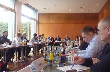 Завершающее мероприятие визита состоялось в Министерстве строительства Германии. Представители Союза рассказали об основных аспектах создания и функционирования саморегулируемых организаций. «В Германии действует система социальной экономики, в рамках которой все построенные предприятия являются независимыми. Участники этой системы объединяются в различные союзы, ассоциации, саморегулируемые организации. Цель создания таких объединений — представлять интересы своих членов в различных органах, чтобы строительное сообщество могло влиять на политику, систему выработки нормативно-правовой базы. Парламентом введена система аккредитации этих объединений. При Парламенте создаются списки объединений, которые прошли аккредитацию. В строительной отрасли Германии выделяют три значимых объединения: Центральный Союз немецкой индустрии, Союз строительного промысла, Строительный профсоюз. Объединения играют центральную роль в выработке тарифных соглашений» — отметил г-н Шалин.